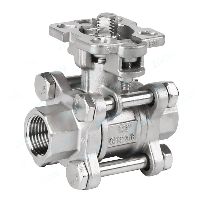 Three way high platform threaded ball valve